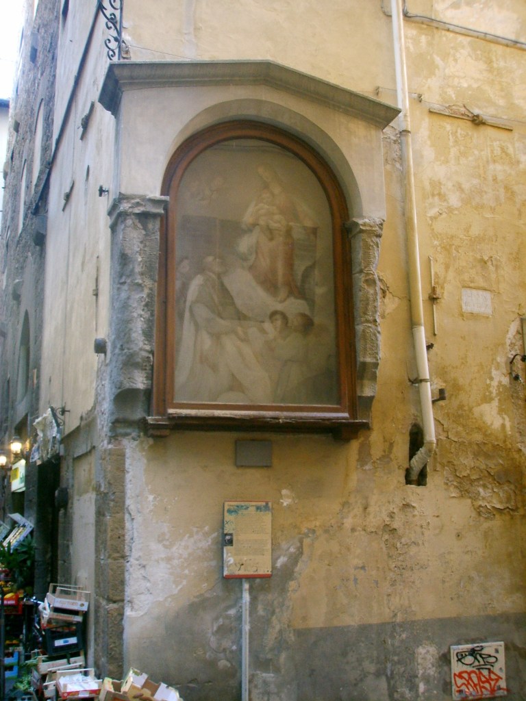 Avete mai fatto caso al grande tabernacolo che si trova all’angolo tra Via de’ Cerchi e Via dei Cimatori? Era stato costruito a fianco dell’Ospizio della Quarconia, il primo riformatorio di cui si abbia notizia, poi trasformato nel teatro in cui debuttò Stenterello.