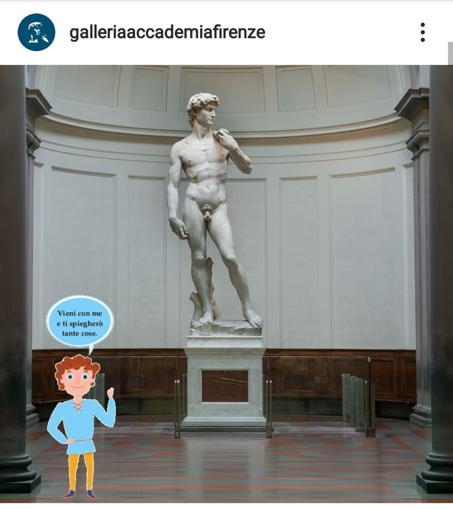 Galleria dell’Accademia. Anche la Galleria dell’Accademia ha pensato ai più piccoli lanciando sui propri canali social l’iniziativa #giocacondavidino: una guida d’eccezione che vi accompagnerà alla scoperta delle opere e della #iconografiadeisanti. Potrete inoltre interagire con la sezione didattica del museo, scaricando gratuitamente dal sito delle schede gioco da far colorare ai vostri bambini.