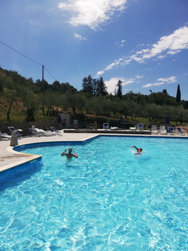 Tra i nostri “vicini di ombrellone” abbiamo sentito parlare in francese e tedesco e nel pomeriggio si sono aggiunti dei giovani italiani venuti per festeggiare un compleanno. Valentina ci ha raccontato delle difficoltà del momento, dovute alla lunga chiusura e alla crisi del turismo internazionale: in questi anni la villa ha accolto moltissimi ospiti stranieri, ma nel 2020 la loro presenza sarà fortemente ridotta, così come l’organizzazione di cerimonie esclusive come i matrimoni. La situazione attuale, tuttavia, può dare a noi l’opportunità di riscoprire i tanti luoghi di inattesa bellezza come questo, sparsi nel cuore della Toscana.