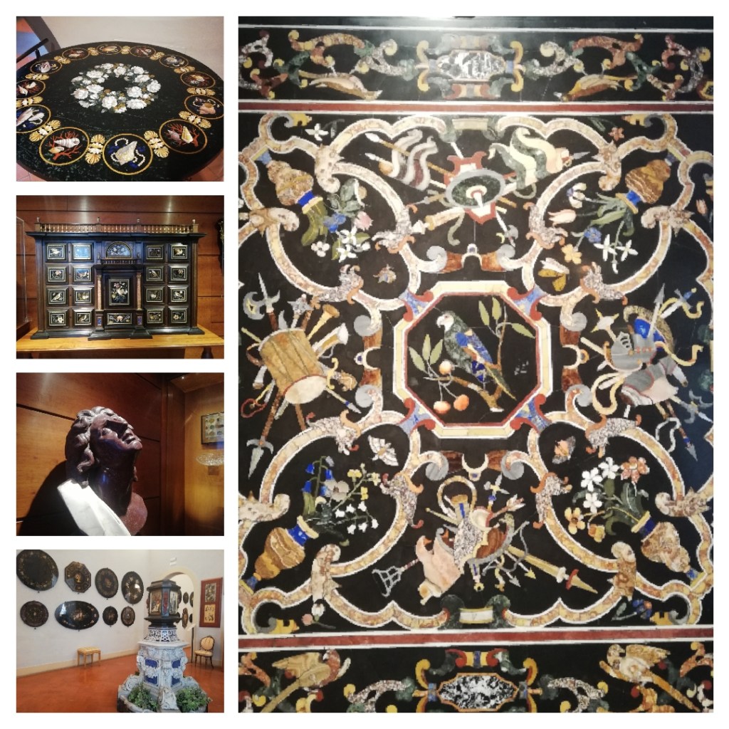 Tutto ebbe inizio con i Medici: la loro passione per le pietre dure e semi-preziose, già evidente nelle collezioni di Lorenzo il Magnifico, ebbe un incredibile sviluppo nel periodo granducale. Cosimo I adorava le opere in porfido rosso – un materiale particolarmente difficile da scolpire – mentre suo figlio Francesco I fece ricostruire il Casino di San Marco, con ambienti in cui poter praticare i suoi esperimenti e officine per gli artisti specializzati nell’intarsio e nella lavorazione del cristallo di rocca, molti dei quali fatti appositamente trasferire da Milano. Il palazzo divenne la prima sede dell’Opificio delle Pietre Dure, la prestigiosa manifattura istituita nel 1588 da Ferdinando I per realizzare la grandiosa decorazione della Cappella dei Principi, il mausoleo destinato alle sepolture della dinastia medicea e completato oltre due secoli dopo. In epoca barocca gli oggetti di arredamento in commesso fiorentino (come tavoli, stipi e cofanetti) furono molto apprezzati e si diffusero nelle più importanti corti italiane e straniere; la produzione dell’Opificio si interruppe solo nel periodo successivo all’Unità d’Italia, quando i suoi laboratori furono destinati alle attività di restauro, ma l’arte del mosaico continuò ad essere praticata nelle botteghe private, arrivando fino ai giorni nostri.