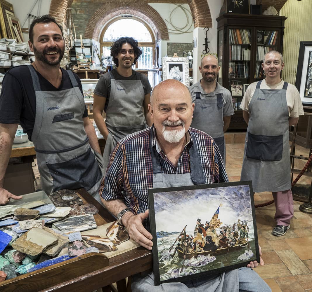 La bottega della famiglia Scarpelli è una delle eccellenze dell’artigianato artistico, in cui si porta avanti l’antica tradizione del commesso fiorentino in pietre dure, una raffinata tecnica di mosaico nata a Firenze alla fine del Cinquecento e diventata un patrimonio comune da preservare e tramandare alle generazioni future.