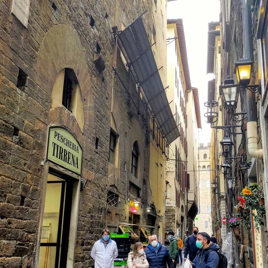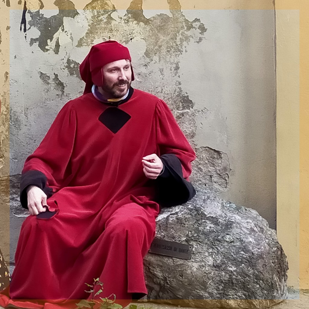 Per avere un’ idea della città in cui si muoveva Dante, dobbiamo recarci nel quartiere medievale di Firenze, passando prima per il Duomo e Piazza delle Pallottole, dove sul marciapiede, accanto ad un portone, si trova un masso con la scritta “i’ vero sasso di Dante”, legato ad un simpatico aneddoto sulle sue abitudini. Pare infatti che il Sommo fosse dotato di una memoria prodigiosa e venisse spesso a guardare i lavori della cattedrale (ricordate che Santa Maria del Fiore era appena stata iniziata!), restando seduto a lungo su questo sasso; un giorno un conoscente che passava da quelle parti lo vide lì, assorto nei suoi pensieri e d’un tratto gli domandò: “O Dante, qual è il cibo che più ti piace?” Lui seccamente rispose: “L’ovo“. Passò un anno o forse più e il tizio ritrovò Dante seduto sempre al solito posto e stavolta gli chiese a bruciapelo: “Con cosa?” E lui prontamente rispose: “Con il sale“.
