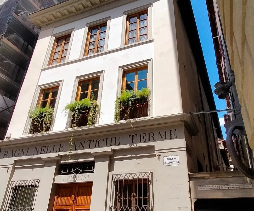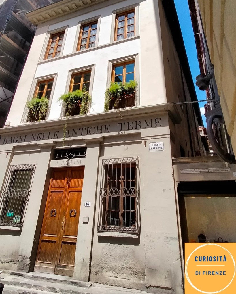 In Borgo Santi Apostoli, di fronte alla piccola e suggestiva Piazza del Limbo, si trova il curioso edificio con la scritta BAGNI NELLE ANTICHE TERME. Sapevate che al suo interno esisteva un vero e proprio stabilimento termale, ancora in funzione agli inizi del secolo scorso?