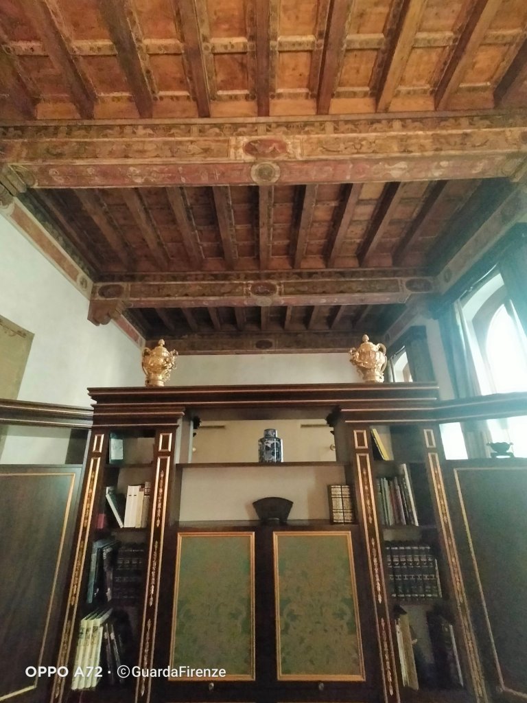 Vi racconto brevemente la storia di questo luogo. In origine qui sorgevano le case dei Portinari, che ancora non abitavano in questo grande edificio, costruito dai discenti di Folco (padre della Beatrice dantesca) tra il 1470 e il 1480 e in seguito acquistato dalla famiglia Salviati, che tra Cinque e Seicento lo fece ingrandire e affrescare1.