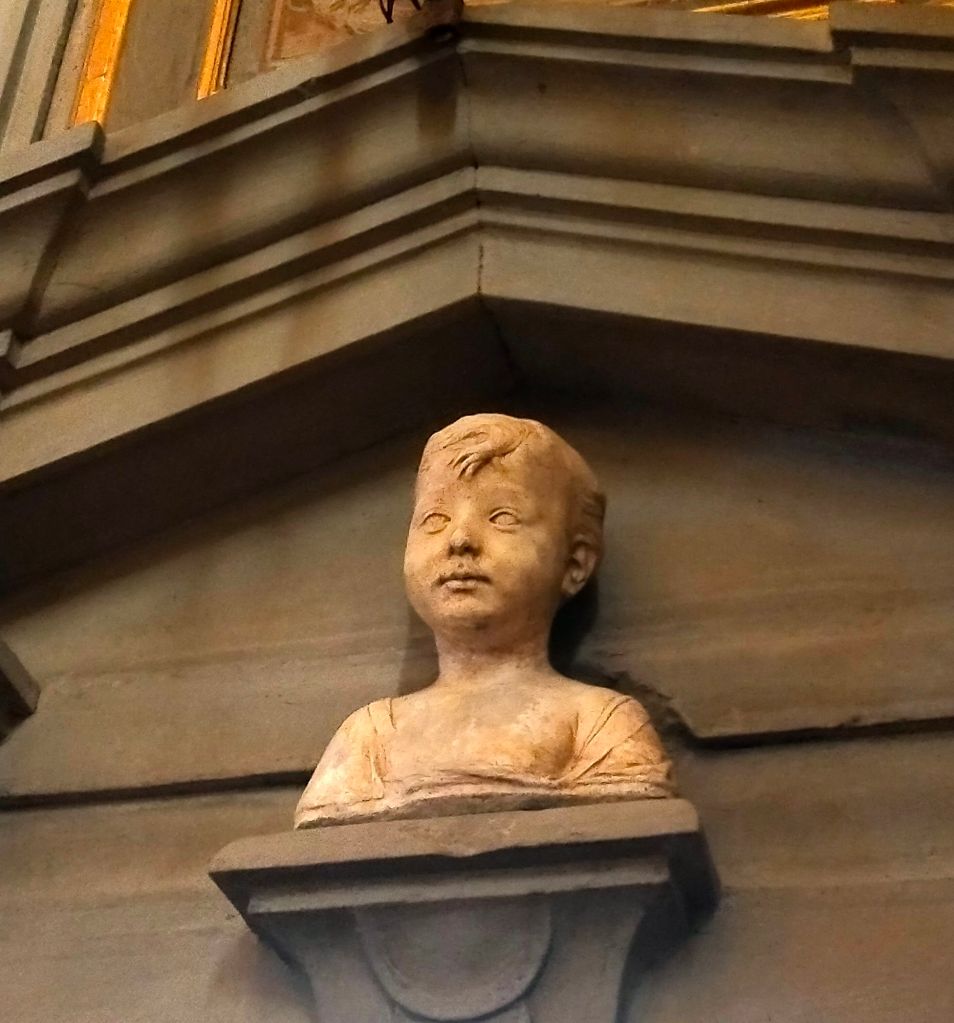 Un’ altra particolarità è costituita dai due coretti sopra ai portali laterali che immettono nella cappella del beato Ippolito, in cui si vedono le copie in marmo di due opere di Desiderio da Settignano e Antonio Rossellino.