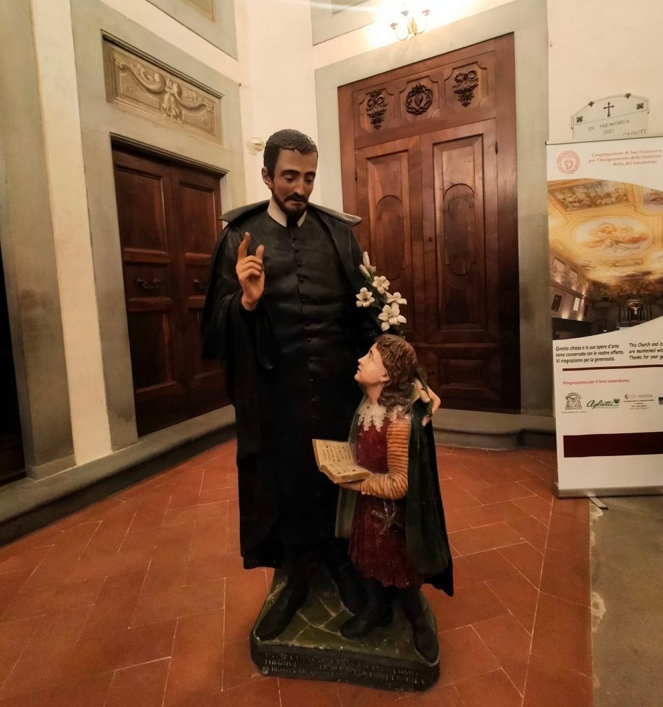 Il suo nome era Ippolito Galanti ed era nato nel quartiere di Santa Maria Novella il 14 ottobre 1565 in una famiglia di modeste origini. Il padre era tessitore e lo aveva avviato al suo stesso mestiere, ma a quattordici anni il ragazzo aveva scelto di prendere i voti e fatto richiesta per entrare nell’ordine francescano. A causa delle sue deboli condizioni di salute la domanda era stata respinta e così Ippolito, che fin da bambino aveva mostrato una forte vocazione religiosa, si era dedicato all’insegnamento del catechismo, diventando ben presto maestro generale della scuola di dottrina della chiesa di Santa Lucia sul Prato. Amato dal popolo e stimato anche dal cardinale Alessandro de’ Medici1, che lo aveva pubblicamente definito “l’Apostolo di Firenze” e nel 1599 nominato governatore delle compagnie della dottrina cristiana di tutta la città, Ippolito aveva fatto costruire l’oratorio della congregazione da lui stesso fondata (poi comunemente detta dei Vanchetoni) su un terreno che gli era stato donato dai francescani di Ognissanti. Morì il 20 marzo 1620 all’età di 54 anni e la Chiesa dette subito inizio al processo di beatificazione, che si concluse nel 1825.